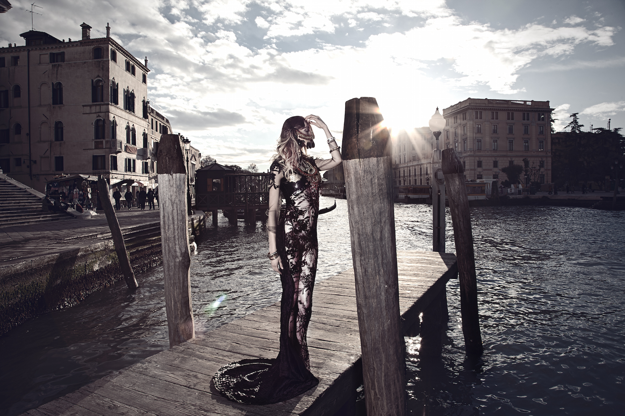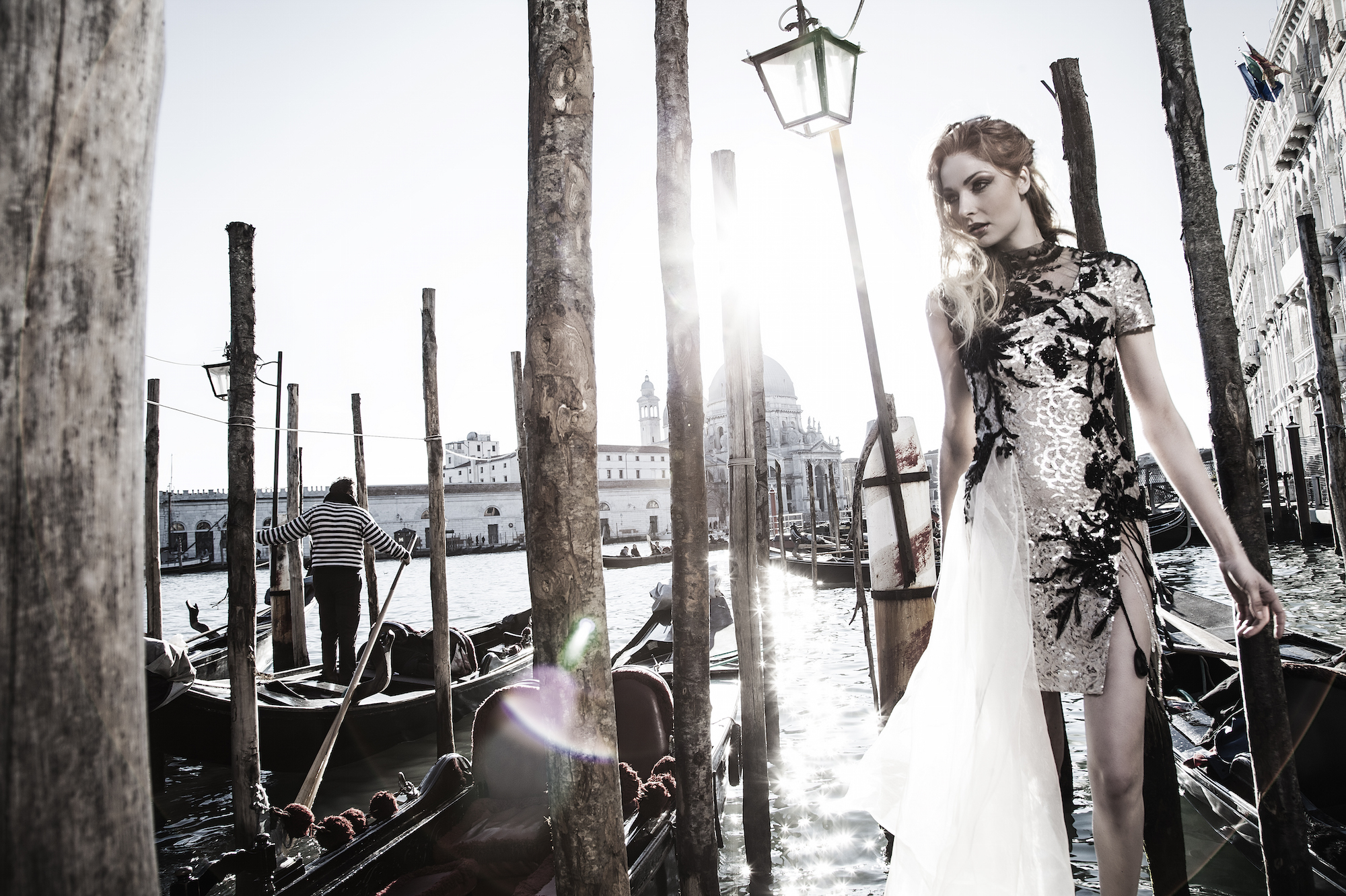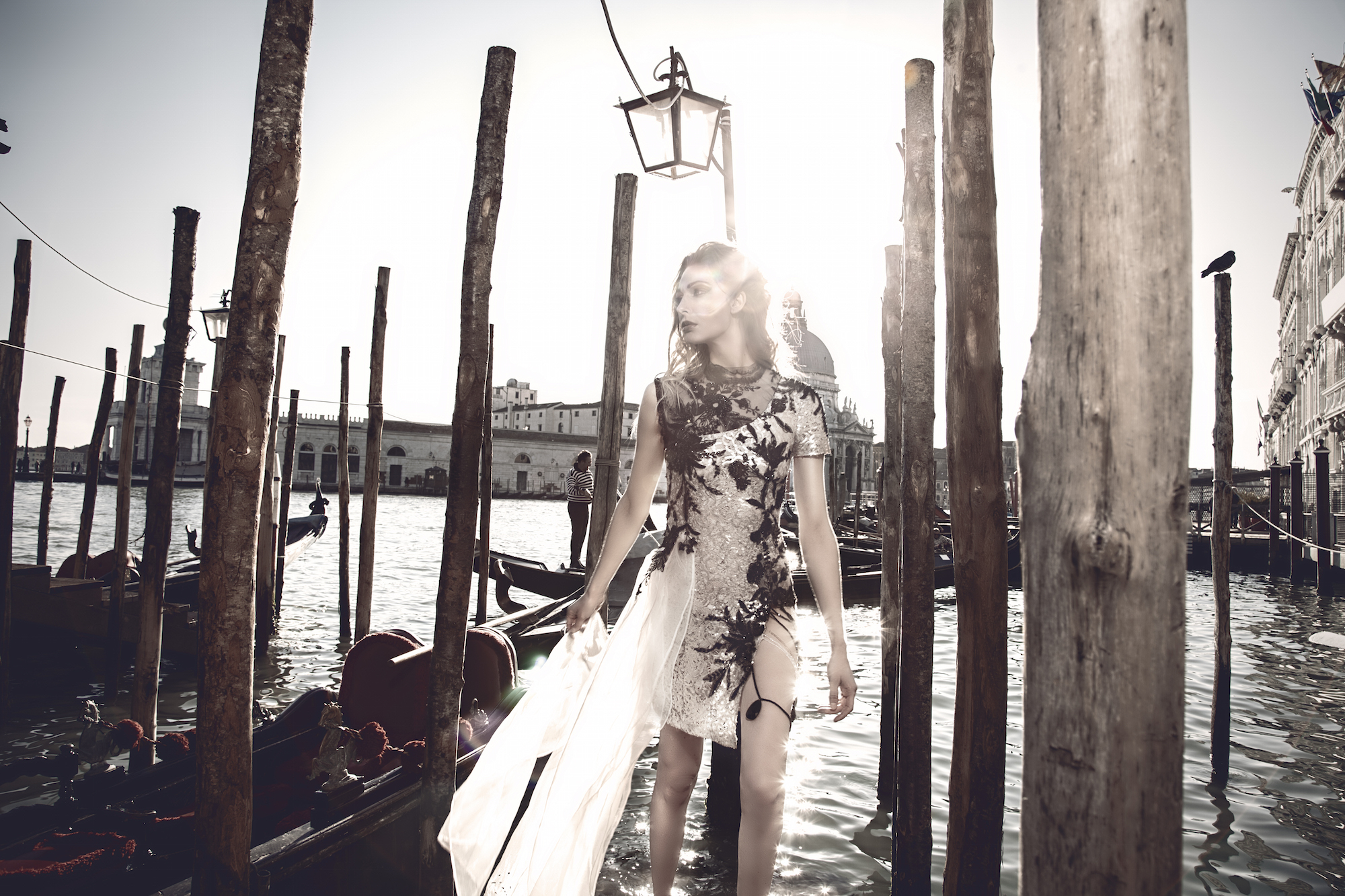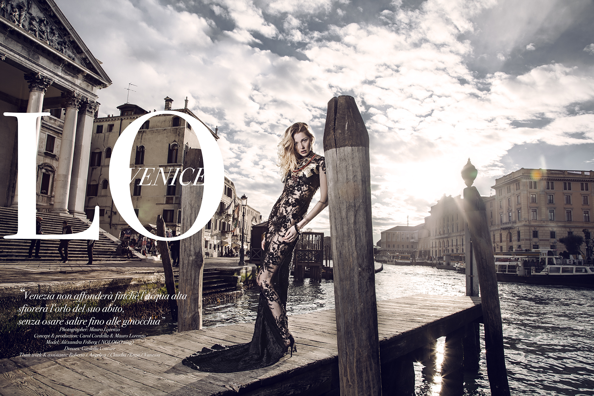 Scattato a Venezia, con modella di Gucci. Fashion editorial uscito su magazine americano e con distribuzione mondiale, insieme ai migliori professionisti del fashion system e del reparto fotografia e styling di moda. Abiti Haute Couture made in italy e pezzi unici.