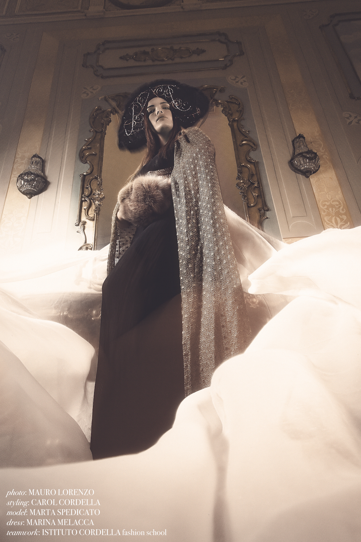Fashion editorial scattato in Puglia in villa del '700 con arredi e componenti originali, con abiti haute couture. Hat and accessories: Matteo Seclì, Claudia Hasa, Antonella Russo, Marina Melacca, Laura Magnolo, Desiree De Matteis, Sara Cucci.